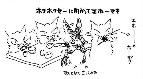 今日のお昼は一人一本持ち寄った「恵方巻き」です。