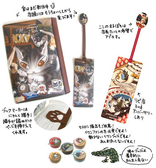 赤色のしおりや猫缶小銭入れは、明日から並びますよ!