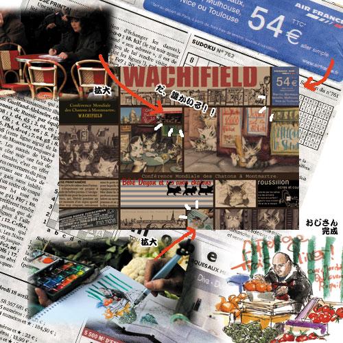 フランスの新聞だったり、パリの街の看板だったり。