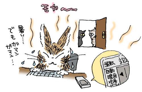 あまりにも暑くなると、汗をかきかき、私達の部屋に涼みに来ます。