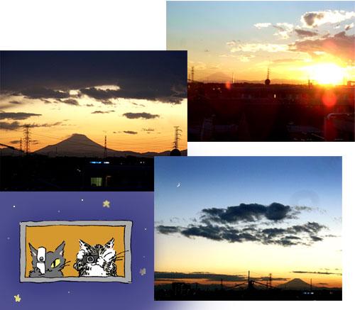沈み行く夕日を眺めながら、富士を望む事が出来ます。
