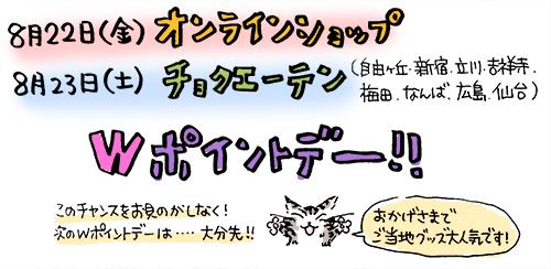 明後日、8月23日(土)は直営店のWポイントデーです!