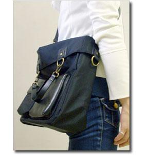 どんな装いにもマッチする黒革とナイロンのコンビネーションが持ちやすい。