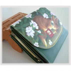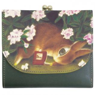「マーシィ古典」の絵柄と深緑の革、アンチックメッキの口金の組み合わせがとっても上品なお財布。ガマ口金の小銭入れは、大きく開いて中身が見やすく取り出しやすいです。