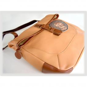 オールレザーの革バッグシリーズが今年も登場♪キャラメル×茶のコンビネーションが明るく春らしい装いです!お馴染みプリントワッペンがアクセント、型も使いやすいデイリーシリーズです!!