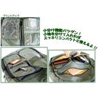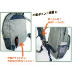 使いやすいDパック型で内部収納も充実。A4ファイルや大型雑誌もラクラク収納♪前面のファスナーポケットには500mlペットボトルがすっぽり入ります。型紐にはボトルケースやデジカメケースが付けられる金具があってとても便利!背面には盗難防止ポケットが付いてます。