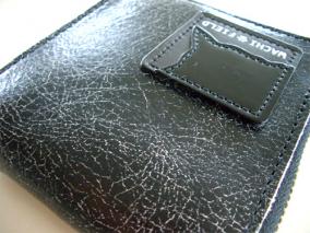 ●クラック模様が美しいDSシリーズの革は、銀面(表側)をペーパーでやすり、ひび割れしやすい塗料を上から吹き付けています。