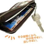 90度カーブしているファスナーは、口が大きく開いて機能性抜群。 内側でDカンに接続されている、ボールチェーンには鍵などをつけると安心♪