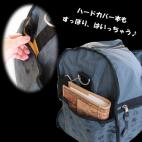 ほら、見てみて! 両サイドの大きなポケットにはハードカバーの本まで入っちゃう。ガイドブックって、がさばるけど、すぐ出せるところに入れておきたいよね? 使わないときは,マジックテープで口が止まっている、お行儀のいいポッケだよ。