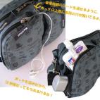正面左側のポッケの天面になにやらボタンホールみたいなのが開いていますねぇ…。 じつは、これ、音楽機器のコードをちょろっと出すためのホールです!厚みも大きさも申し分ないポッケだから、MP3プレーヤーはもちろん、MD、CDプレーヤー、懐かしのカセットプレーヤーだってはいっちゃう?!