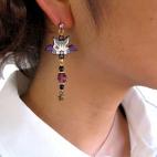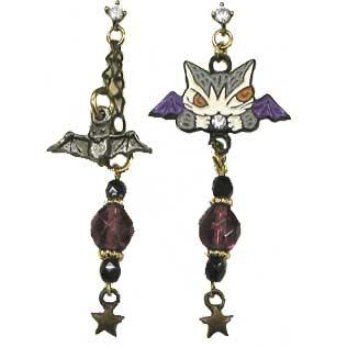 ハロウィン季節を意識したちょっとブラックなダヤングッズが登場♪ ダヤンの部分は黒塗装した金具に色をいれた新しい手法だよ。よ〜くみると、羽の生えたダヤンのちっちゃい両手にキラキラ光るクリスタルを持っているんだよ! チャームのコウモリもまるっとした立体でとってもキュート。 落ち着いた光沢だから、ラグジュアリー感が漂います♪
