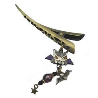 ハロウィン季節を意識したちょっとブラックなダヤングッズが登場♪ ダヤンの部分は黒塗装した金具に色をいれた新しい手法だよ。よ〜くみると、羽の生えたダヤンのちっちゃい両手にキラキラ光るクリスタルを持っているんだよ! チャームのコウモリもまるっとした立体でとってもキュート。 落ち着いた光沢だから、ラグジュアリー感が漂います♪