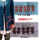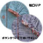 袖をロールアップして、ボタンと紐で止めれば7分くらいの長さで止まるよ♪