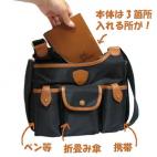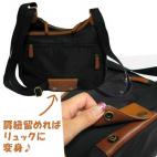 背中のホックでショルダー部分を留めると、ショルダーバッグがリュックに早変わり!!!資料が多すぎて重過ぎる…。プレゼン用のサンプルがあり得なく重い…そんなときはリュックにしてネ。