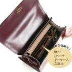 深いワインの彩りがどんな装いにもしっくりはまり、ちょっとしたジュエリー感覚でお持ちいただけます。ショルダーを外してハンドル仕様、肩から下げてショルダー仕様の2WAYで楽しめま