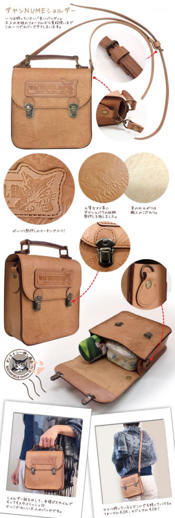 かっちりとしたフォルムが愛らしいボックス型ショルダーバッグ。ショルダーを取り外せば、小さな鞄に早変わり♪裏地はついていない革だけで作られたバッグです。