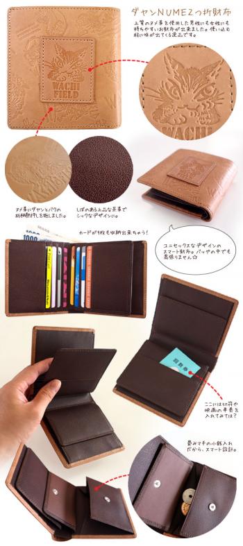 ヌメ革にダヤンとバクの総柄熱押しを施しました。