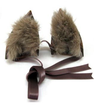 ふわっふわの毛足長めのボアとプリントを施した革を使用した贅沢な猫耳です。
