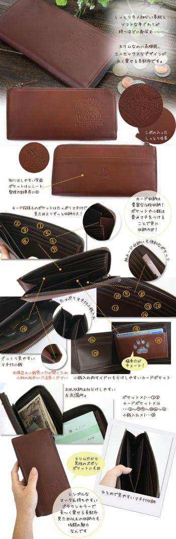 スマート&スリムなロングパースは見た目よりずっと充実の内容量!内装ポケットのひとつはマチ付なのでかさばる領収書整理もスッキリ。猫手マークのカードポケットもシンプルなかわいさです。